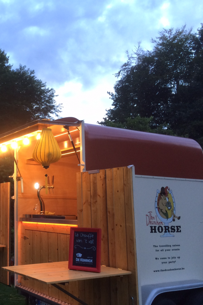Bent u op zoek naar een drank-truck voor uw feest, receptie, festival of bedrijfsevent? Welkom bij The Drunken Horse, uw persoonlijke travelling saloon! The Drunken Horse haalt met plezier zijn gezellige saloon van stal om u en uw gasten een smaakvolle en onvergetelijke ervaring te bezorgen. En dat in volle galop! Hij draaft zijn heerlijkste bieren van t vat, gins, wijnen, cava, champagne en aperitiefhapjes aan. Zo kunt u de teugels eens lekker laten vieren! Jihaaa! The Drunken Horse zwerft al jarenlang van de ene drankgelegenheid naar de andere. Hij zweept uw feestje op gang met exclusieve internationale dranken en is bezadeld met tonnen ervaring! Zo weet hij precies hoe hij uw gasten kan verwennen met een professionele service! Bezoek gerust ook onze website: www.thedrunkenhorse.be