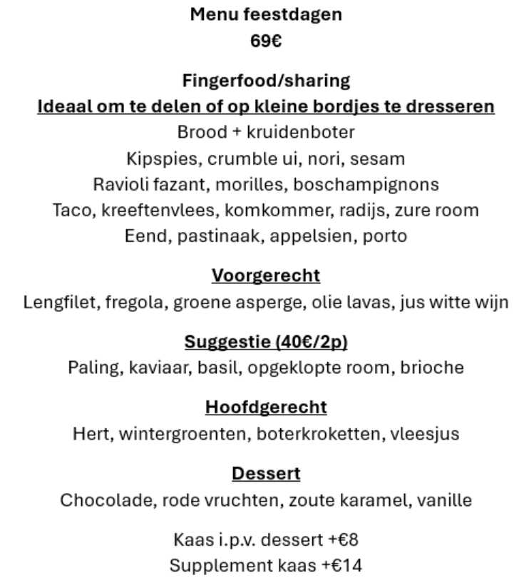 - catering op maat in overleg met de chef.