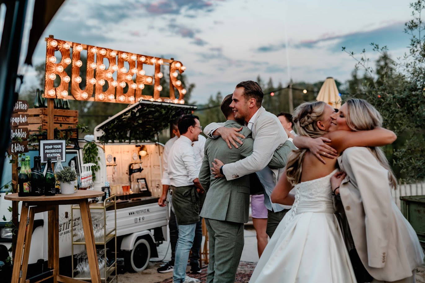 Onze vintage Piaggio Ape bubble bar is een driewielig wagentje die met liefde en passie is omgebouwd tot een unieke mobiele prosecco bar, waarmee we jullie gasten kunnen voorzien van heerlijke Italiaanse Prosecco Frizzante, klassieke Italiaanse cocktails en Peroni bier van de tap. OF ga je voor onze nieuwe pop-up Cocktailbar. Hier kunnen wij echt alles mee, denk aan Prosecco, Bier, Cocktails, Mocktails, Bruiswater. En doe dit in de combinatie met onze anti-pasti. En krijg gegarandeerd nét die extra beleving!
