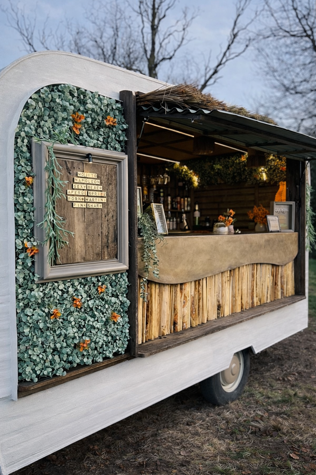 Onze mobiele bar is een stijlvolle cocktailtruck die meer doet dan alleen drank serveren. Het is een bar op wielen waar kwaliteit, sfeer en gezelligheid samenkomen.