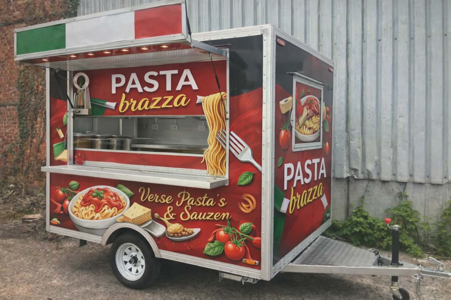 Wij hebben een foodtruck op wielen en wij kunnen ons ook aanbieden voor feestjes waar er moeilijk te bereiken is met foodtruck en dan hebben we een alternatief en plaatsen we een foodkiosk vouwtent proffesioneel met gezeligge uitstraling,we bieden heerlijke pasta's aan met een keuze uit 27 soorten sauzen en heerlijke toppings,alles wat je ons besteld en er overschot is,krijg je op het einde van het feest mee,eerlijk is heerlijk.Heeft u vragen omtrent onze formules,aarzel niet om ons te contacteren via tel 0495 43 80 36 of rechtstreekse email:filip.de.groote4@telenet.be